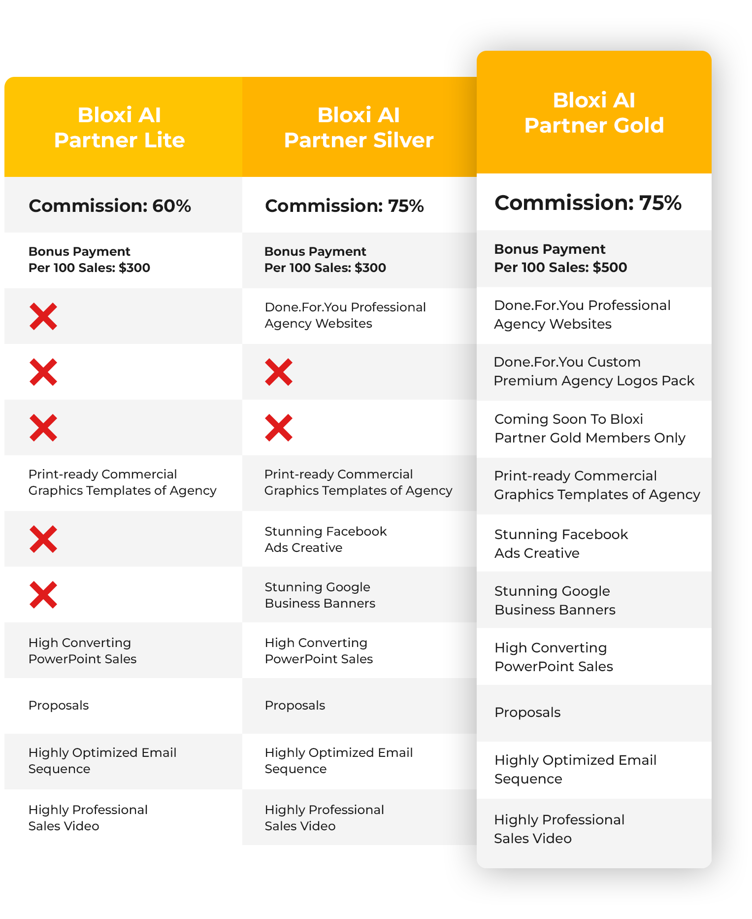 With the partners program, you get to promote Bloxi A.I’s funnel at an increased commission rate, with DFY sales tools and traffic, and for every sales milestone you cross, you collect cash!